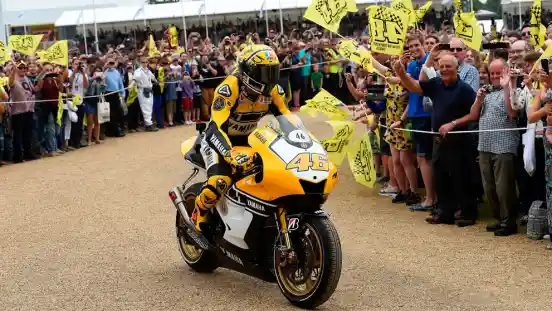 Pada Ahad (28/6) kemarin usai bertarung di MotoGP seri Assen, Belanda Valentino Rossi langsung terbang ke Inggris untuk mengikuti acara Goodwood Festival of Speed. Di acara tersebut Rossi mengendarai Yamaha M1 dengan stripping special 60 tahun Yamaha. M1 dilabur warna kuning dan bercorak striping kotak mirip M1 yang dulu dipakai memperingati 50 tahun Yamaha.