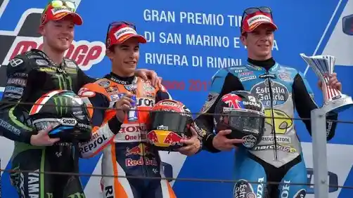 Naik ke podium juara tak pernah berada dalam benak Scott Redding. Apalagi pembalap tim Estrella Galicia itu pun tak muluk-muluk karena ada pun tidak start dari posisi terdepan. Namun hasil balapan di GP San Marino ini betul-betul di luar dugaannya sendiri: finish di peringkat ketiga. “Saya tidak pernah berharap seperti ini (bisa naik podium juara),” kata Redding.