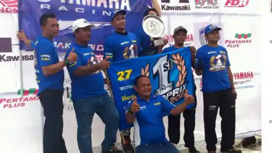 Toh demikian, wakil tim Yamaha TJM Racing yang naik dua kali podium dua race kelas 150 cc langsung merayakan kemenangannya di sirkuit Balipat, Binuang, Kalsel hari ini (22/11).