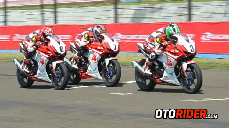 Maklum saja, dengan menggunakan motor yang sama, yakni Honda CBR250R, semua pembalap hanya fokus di skil untuk maju ke depan karena memiliki peluang yang nyaris sama. Tak heran pergantian pimpinan lomba nyaris terjadi di tiap lap.