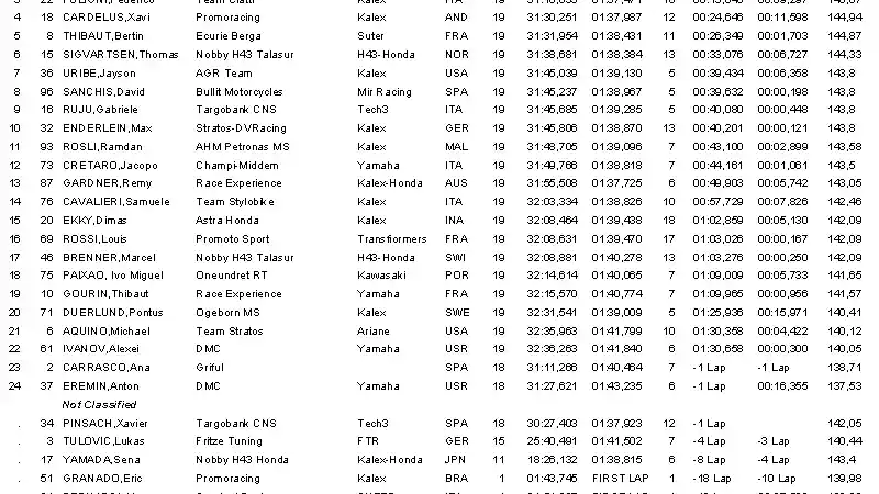 Seperti dilansir akun Facebook Astra Honda Racing Team. Posisi start Dimas menjadi juru kunci dari 29 starter. Tapi, dengan gigih Dimas terus berjuang memperbaiki posisi. Sampai dengan 1lap menjelang finish, posisi Dimas masih urutan 18. Tapi, mendekati finish, Dimas mampu overtaking 3 pebalap dan finish urutan 15 dan mendapat satu poin setelah overtaking 14 pebalap!