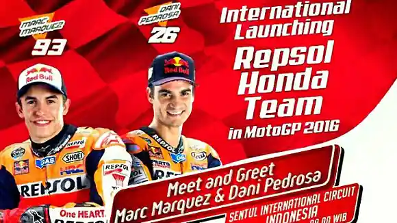 Seperti terlihat pada poster di atas. Nantinya, akan ada international launching dari Repsol Honda Team 2016. Dengan rangkaian acara meet and greet kedua rider.