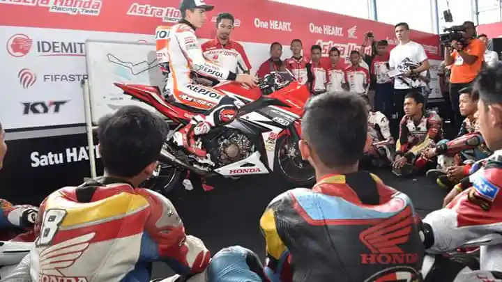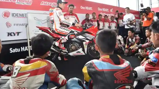 Meski agenda utama kehadiran Marc Marquez di Indonesia adalah menyapa penggemarnya sekaligus menguji kemampuan CBR250RR, namun ada juga agenda lain, yakni melatih rider muda Indonesia.