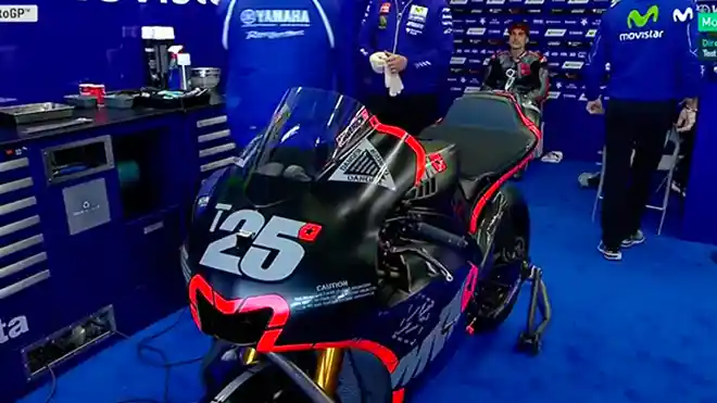 Tak kalah atraktif, kubu Movistar Yamaha yang kini punya jagoan baru, yakni Maverick Vinales tampil gahar dengan kombinasi kelir hitam dan merah pada tunggangannya, Yamaha YZR-M1. Serta livery standar dari Yamaha Tech3 yang tengah dites oleh pendatang baru, Jonas Folger.