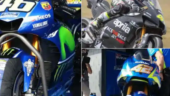 Selanjutnya ada Suzuki yang menguji fairing aneh pada motor Suzuki GSX-RR milik Alex Rins. Seperti bisa dilihat, fairing motor Rins tampil berbeda dengan kedua lubang udara di bagian sisi fairing, tepatnya pada sisi nomor start.