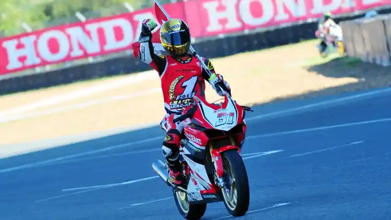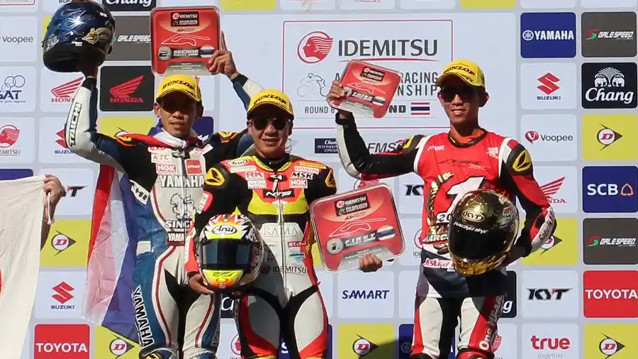 Pembalap asal Indonesia yang telah mengunci gelar Juara Asia pada balapan sebelumnya kembali mempersembahkan podium ketiga rangkaian balapan Asia Road Racing Championship 2017.