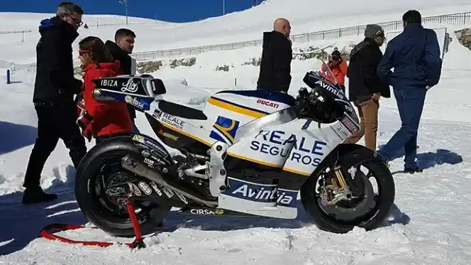Kawasan bersalju di Circuito de Andorra menjadi lokasi peluncuran tim MotoGP, Reale Avintia Racing kemarin (6/3). Peluncuran di kawasan bersalju bagi tim MotoGP, mungkin hal yang umum, namun tim yang dibela oleh Hector Barbera dan Loris Baz ini melakukannya dengan gaya.