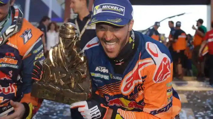 Drama lainnya, rider Australia yang digadang bakal menjuarai event tahun ini, yakni Toby Price harus rela keluar lomba setelah kecelakaan dahsyat di etape empat. Alhasil, kemenangan mutlak ada pada Sunderland.