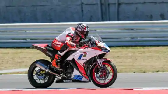 Pembalap Indonesia, Ali Adriansyah Rusmiputro tampil ngotot di ajang balap World Supersport 300 di Sirkuit Misano, Italia yang berlangsung pada Minggu (18/6).