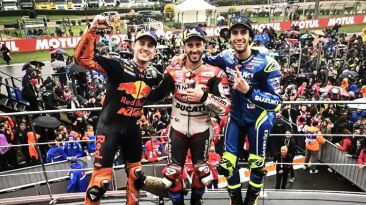 Kemudian posisi start diambil oleh Alex Rins, Dovizioso dan Rossi di barisan pertama dengan jumlah putaran sebanyak 14 putaran. Setelah sempat tertunda 40 menit, kemudian balapan kembali dimulai.