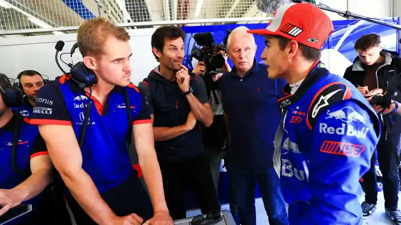 Marc Marquez turun ke lintasan dengan mobil berwarna tim Toro Rosso Honda 2018. Sebelum turun ke lintasan, Marquez melakukan pengaturan posisi berkendara dan berlatih dengan simulator milik Red Bull di Milton Keynes, Inggris.