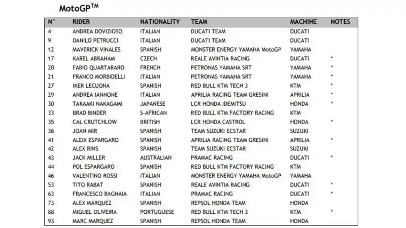 Daftar lengkap pembalap sementara MotoGP 2020:
