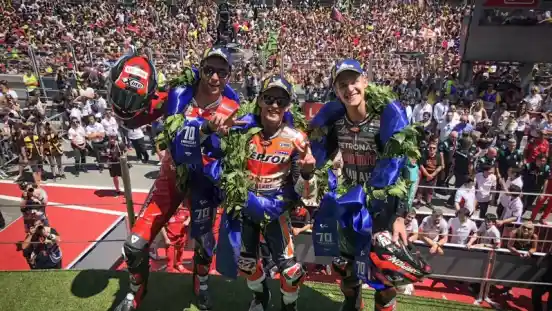 Sementara itu, Marquez yang berhasil menghindari tabrakan beruntun terus melesat di urutan pertama hingga finish 2,6 detik lebih cepat dari Quartararo. Sedangkan Petrucci yang kehilangan posisi kedua harus puas finish di urutan ketiga serta disusul Rins pada urutan keempat.