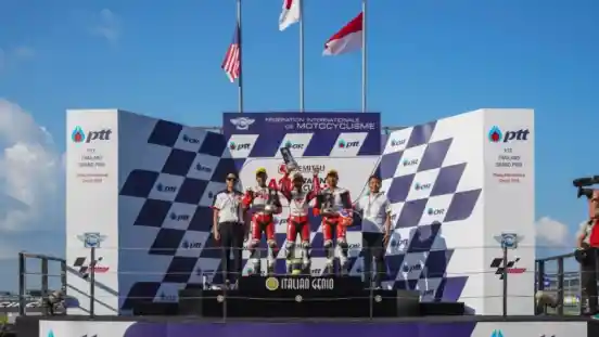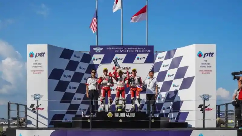 Bendera Merah Putih berkibar di podium ajang balap Asia Talent Cup (ATC) 2019 di Chang International Circuit, Buriram, Thailand (5-6/10).