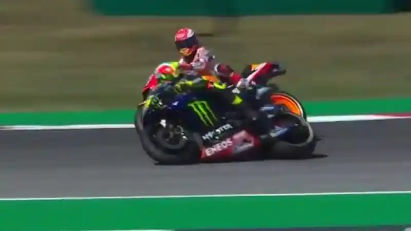Saat itu, Marquez masih berusaha memperbaiki catatan waktunya untuk dapat finish di barisan depan. Di lap terakhir tersebut, catatan waktu Marquez masih berada di posisi kelima dan Rossi di posisi ketujuh.