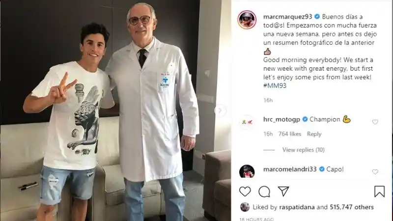 "Selamat pagi semuanya! Kita mulai minggu ini dengan energi yang hebat. Tetapi pertama-tama mari nikmati beberapa gambar dari minggu lalu," ujar Marquez di unggahan Instagram miliknya dengan bahasa Spanyol.