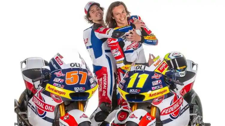 Tim Federal Oil Gresini yang berlaga di ajang balap Moto2 resmi mengenalkan motor terbarunya. Logo besar Federal Oil juga masih terpampang jelas di motor tersebut sebagai sponsor utama.