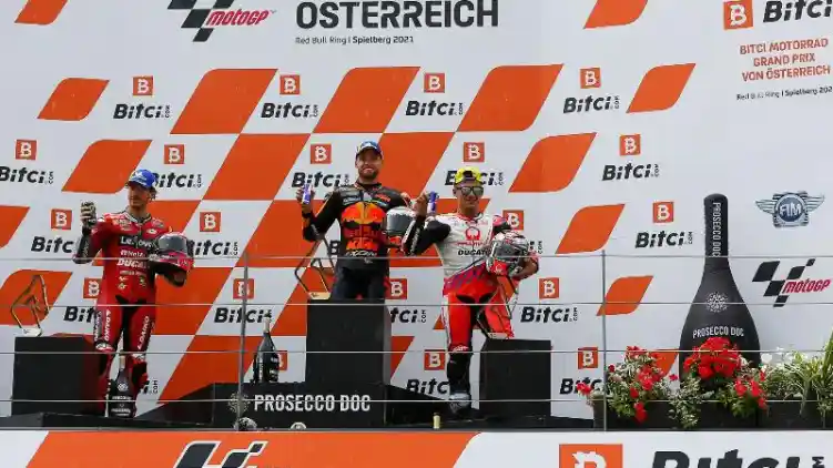 Dilansir dari Crash, Brad Binder memenangkan MotoGP Austria 2021 yang kacau setelah menentang hujan deras dengan ban slick. Sementara di belakangnya Francesco Bagnaia, Jorge Martin, dan Joan Mir berada di belakangnya. Padahal Bagnaia memimpin sebagain besar balapan di lintasan kering.
