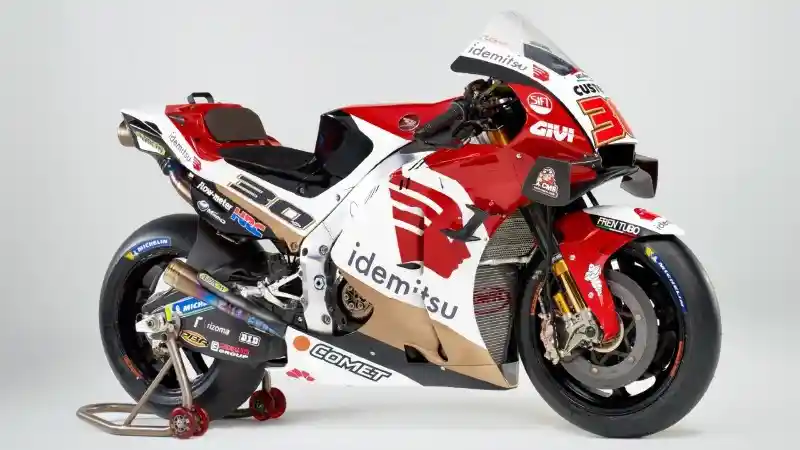 Bicara terlebih dahulu soal tampilan, Honda RC213V 2021 milik Nakagami didominasi warna merah dan putih di keseluruhan bodinya serta sedikit sentuhan warna emas. Selain itu, terdapat logo Idemitsu di bagian fairing-nya. Meski demikian, tak ada ubahan signifikan secara desainnya.