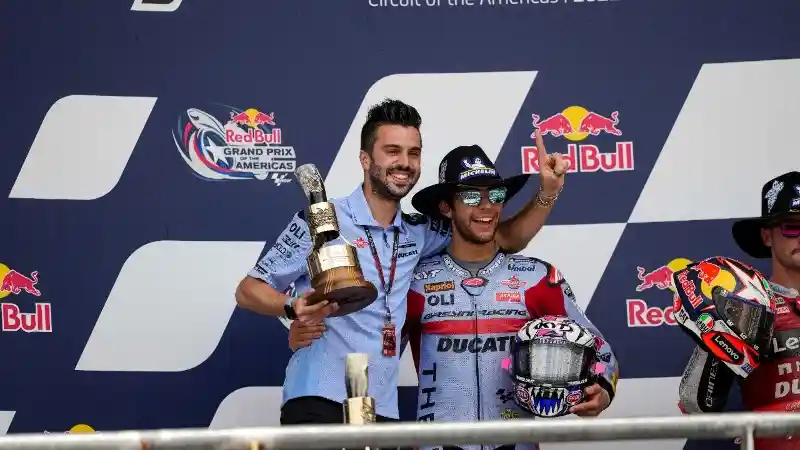 Enea Bastianini pembalap Federal Oil Gresini Racing kembali bikin bangga Indonesia dengan meraih podium kemenangan di MotoGP Amerika. Pembalap muda itu berhasil meraih kemenangan menggunakan Ducati Desmosedici GP21 dari posisi grid ke-5. Pembalap Italia itu langsung menyalip pembalap di depan dan memimpin hingga garis finish.