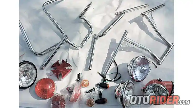 Gading CB dari Kebumen, Jawa Tengah juga menyediakan beragam aksesoris wajib. Mulai dari setang custom khusus scrambler dibanderol Rp 70 ribu sampai Rp 100 ribu. Lalu lampu belakang custom Rp 75 ribu sampai Rp 180 ribu, lampu depan Honda CB Mini, A4, S90 seharga Rp 150 ribu sampai Rp 300 ribu, lampu sein Rp 40 ribu sampai Rp 150 ribu.