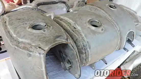 Pasalnya, komponen itulah yang pasti diganti. Wajar, karena umumnya motor bahan buat membangun café racer dan scrambler diambil dari naked bike seperti Honda CB, GL, Tiger, Honda Mega Pro, Yamaha Scorpio, Byson dan masih banyak lagi. “Yah biasanya sih tangki orisinil bawaan pabrik pasti tidak terpakai,” tutur Rhyan, punggawa Nakalulu Custom di Depok.