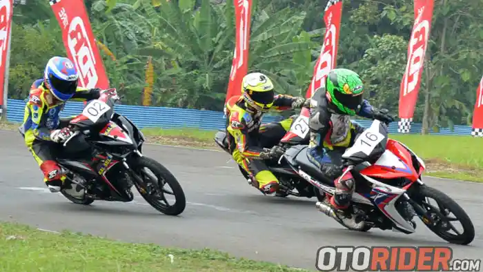 “Membalap dengan motor standar seperti ini terbilang lebih sulit, karena harus menjaga kondisi mesin. Jangan terlalu maksa, kalau nggak bisa jebol mesinnya. Detail kecil seperti tekanan angin juga berpengaruh,” ungkap AM Fadli, wakil kontingen DKI Jakarta yang jadi juara di kelas 125 cc. (otorider.com)