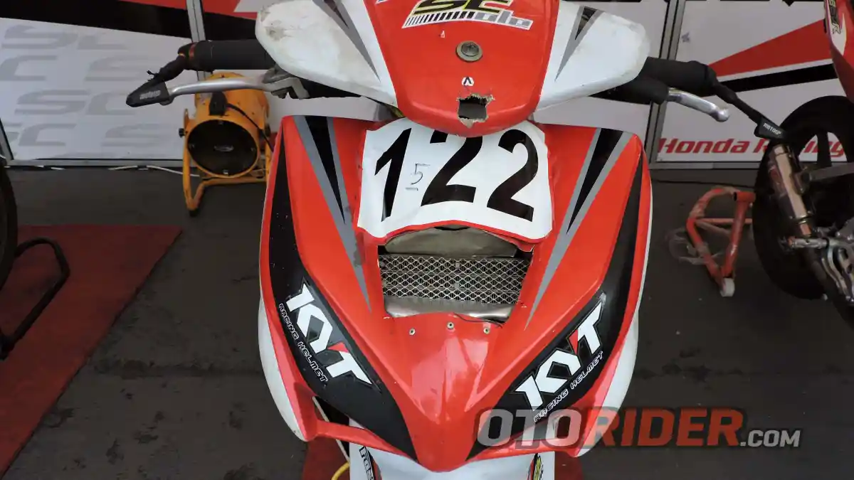 Karena spesifikasi motor MP3 merupakan bebek standar pemula, maka ubahan kepala silinder dan piston pun tak begitu banyak ubahan. “Kita cuma fokus di mekanisme injeksinya aja,” buka Robby Yudha Kurniawan, Manajer tim yang bermarkas di Purwerejo ini. Tanpa menjelaskan spek ruang bakar dan komponen pendukungnya, ia mengakui masih ada beberapa catatan khusus di sektor pengabut bahan bakar injeksi tersebut.