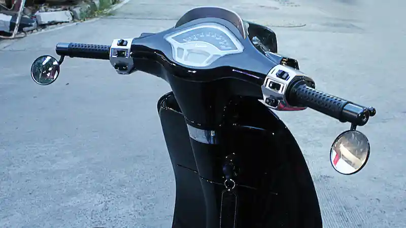 Spion ‘berdoa’ pun perlu dihilangkan. Gantinya bisa memakai spion bar end ala café racer, “Atau memakai spion model trapesium seperti Rizoma Circuit,” ujar Ardimas.