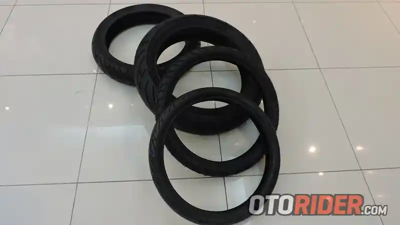 "Kami mengadopsi pattern depan dan belakang yang berbeda, memang didesain seperti itu. Karena tugas kedua ban ini (depan-belakang, Red) berbeda. Dan kebanyakan ban dengan ulir yang berbeda ini dipakai motor-motor besar. Kami sudah mengujinya secara keseluruhan, dengan pengujian terbaik," ujar Ifan Martin Head Tire & Tube Departement Domestic Marketing Division.