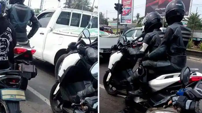 Penampakan motor berkelir putih ini ditengarai didapat saat melakukan tes jalan di Indonesia. Uniknya, XMax 250 diuji jalan dengan cara berboncengan, bukan hanya diuji sendirian.