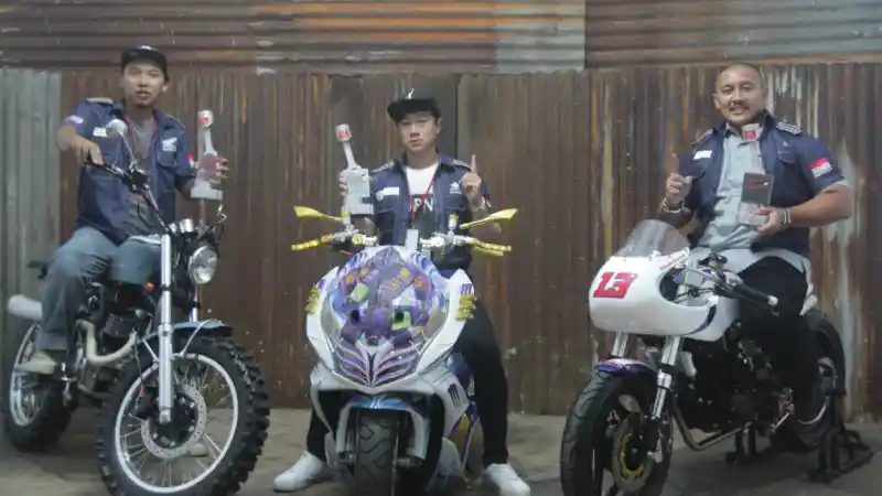 Honda Tiger hasil karya modifikasi Yuwono Jati jadi pemenang Bebek & Sport National Champion. Budi Setiawan yang membawa Honda GL 200R menang di kelas Free for All National Champion. Dan pemenang Matic National Champion direbut oleh Peterson Rvai dengan Honda PCX. Selamat! (otorider.com)