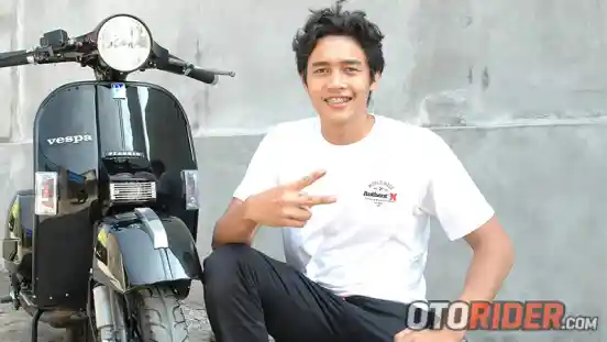 Crosser nasional M. Arjuna Wicaksana punya hobi asyik di waktu rehat kompetisi, yaitu utak-atik Vespa Spartan yang dibuat mirip New PX.