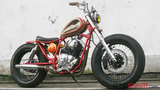 Rangka ala chopper dipadu ban besar, lahirlah gaya BB alias Bratstyle Bobber di Yamaha Scorpio 2007 ini.