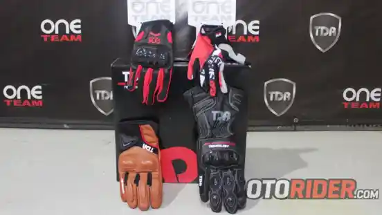 "Di sini tersaji dua merk sarung tangan yang bisa dipakai para rider, yakni merk TDR dan One Team. Sarung tangan adalah hal yang vital untuk safety," ucap Yudo Handoko dari TDR.