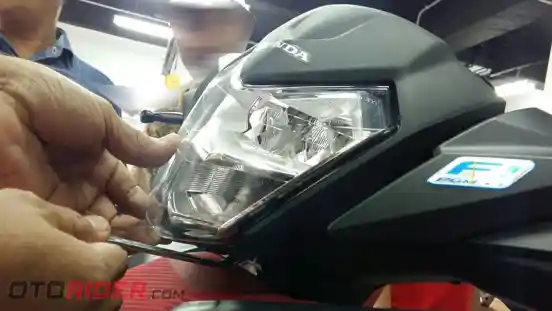 Modalnya cukup dengan memakai kunci pas 8. "Fungsinya untuk mengendurkan baut lampu di bagian bawah batok," buka Wahyu Isti Budi, Technical Trainer Honda Wahana.