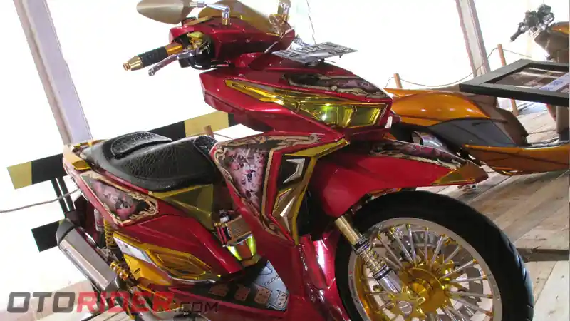 Sedangkan nuansa elegan bisa terlihat dari pemilihan warna dominan merah marun yang dipadu aksen emas di beberapa panel bodi. Termasuk ragam variasi yang menyesaki bagian blok CVT dan kaki-kaki.
