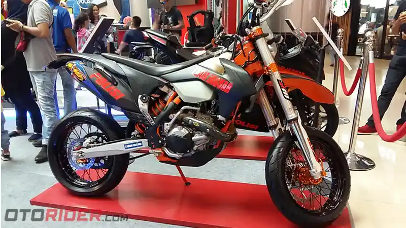 Salah satu motor yang menarik di ajang Depok Police Expo 2 di Margo City Mall pekan lalu adalah KTM Sixdays EXC-F Supermoto yang diplot sebagai andalan Team Jaguar.