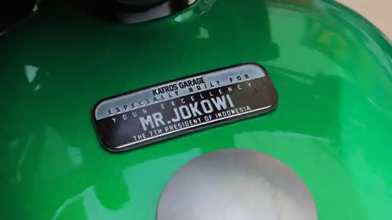 “Katros garage melakukan desain terlebih dahulu kepada konsumen, sebelum motor itu digarap. Nah desain yang saat ini untuk motor Pak Jokowi, dia yang memilih, seperti teman teman yang sudah lihat motornya,” ujar Atenk, Owner Katros Garage.