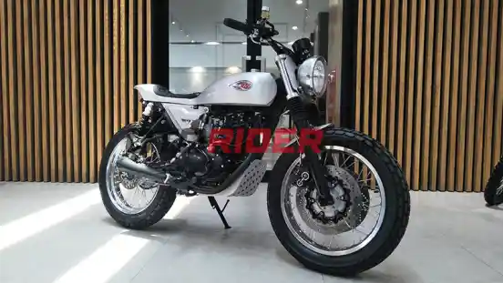 Sementara itu, roda juga dibuat lebih kekar. Pelek TK 18 x 2,5 inci di depan dibalut ban tebal dengan kembang kasar Dunlop K180 berdimensi 120/90R18, sedangkan di belakang pelek 18 x 3.00 inci dengan ban 130/80R18.