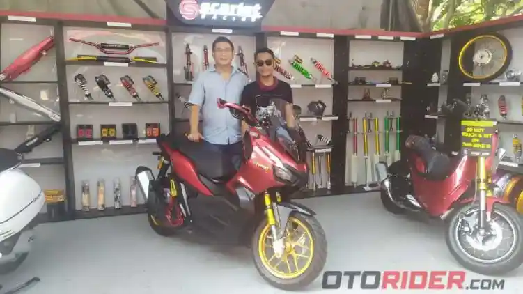 Scarlet Racing pun menghadirkan Honda ADV150 yang telah digarap oleh builder motor lokal, yakni Andi Akbar alias Atenx Katros. Tentunya perihal suspensi yang telah diubah oleh Atenx menggunakan produk dari Scarlet Racing.