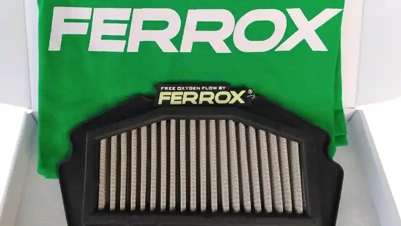 Filter udara Ferrox untuk Kawasaki Ninja ZX-25R ini dibuat dari bahan stinless steel 304 Jepang. Andy Hasten selaku Marketing Manager PT Primes Asia memaparkan filter udara ini diriset di Thailand. Dirinya menjelaskan, desain bingkai untuk motor 250 cc empat silinder itu dibuat lebih tebal sehingga kokoh dan awet.