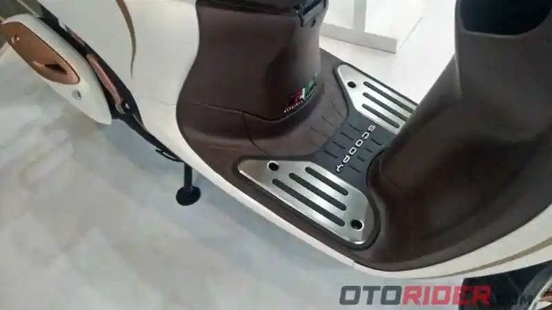 Sejumlah aksesoris genuine Honda untuk All New Scoopy juga dipasangkan pada inspirasi modifikasi ini. Secara keseluruhan tampilannya sangat elegan, ditambah windscreen di depannya yang sedikit mengingatkan pada skutik Vespa. Sayangnya model modifikasi ini tidak dijual oleh AHM, namun untuk honda genuine aksesoris all new scoopy sudah tersedia di dealer.