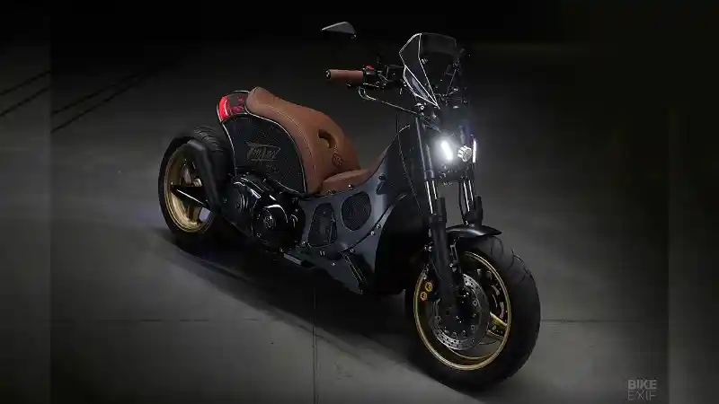 Maxi skuter Yamaha TMax XP500 keluaran tahun 2009 berubah tampilan menjadi tak biasa. Maciej Bielawski asal Polandia sebagai pemilik ingin mengubah tampilan motornya menjadi terlihat 'kejam'.