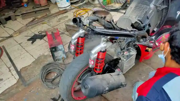 Yamaha Lexi 125 menjadi salah satu skutik Maxi yang dapat dimodifikasi beragam komponennya, salah satunya adalah suspensi. Seperti yang dilakukan Baba Zeal yang mengubah menggunakan shock nmax.