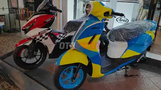 "Selain dua model tersebut, kami juga menyediakan versi warna custom untuk berbagai tipe motor Yamaha terbaru," ucap Sabrina, salah satu sales Yamaha Mekar Motor.